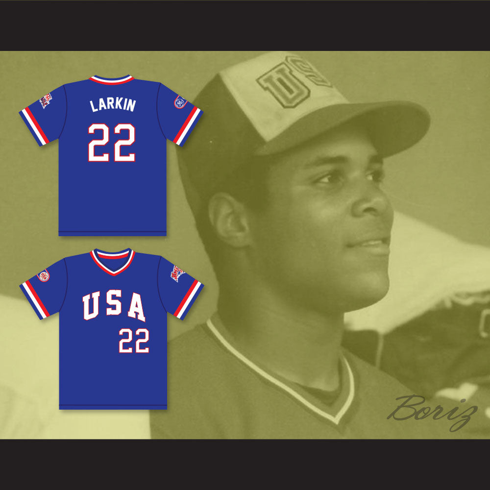 Barry Larkin 22 1984 USA Team Blue Baseball Jersey
