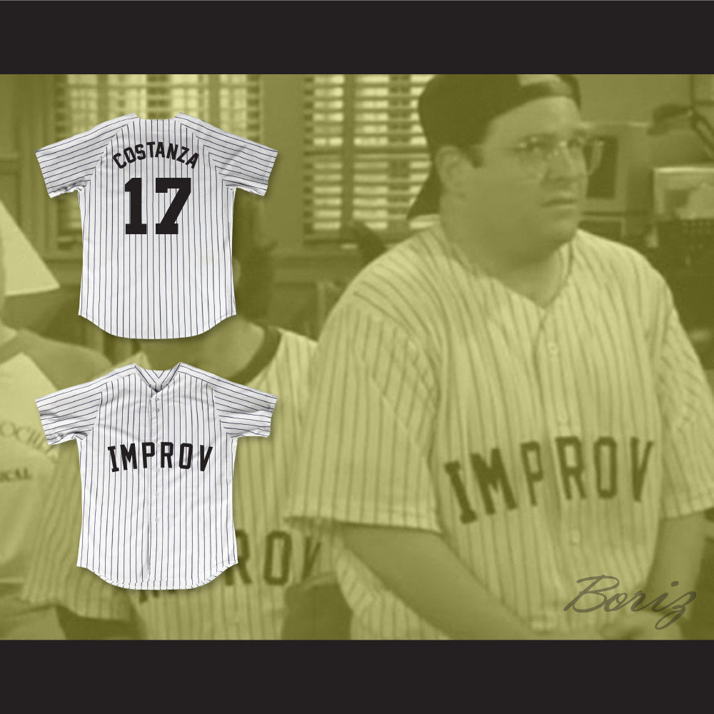 George Costanza 17 Improv White Pinstriped Baseball Jersey