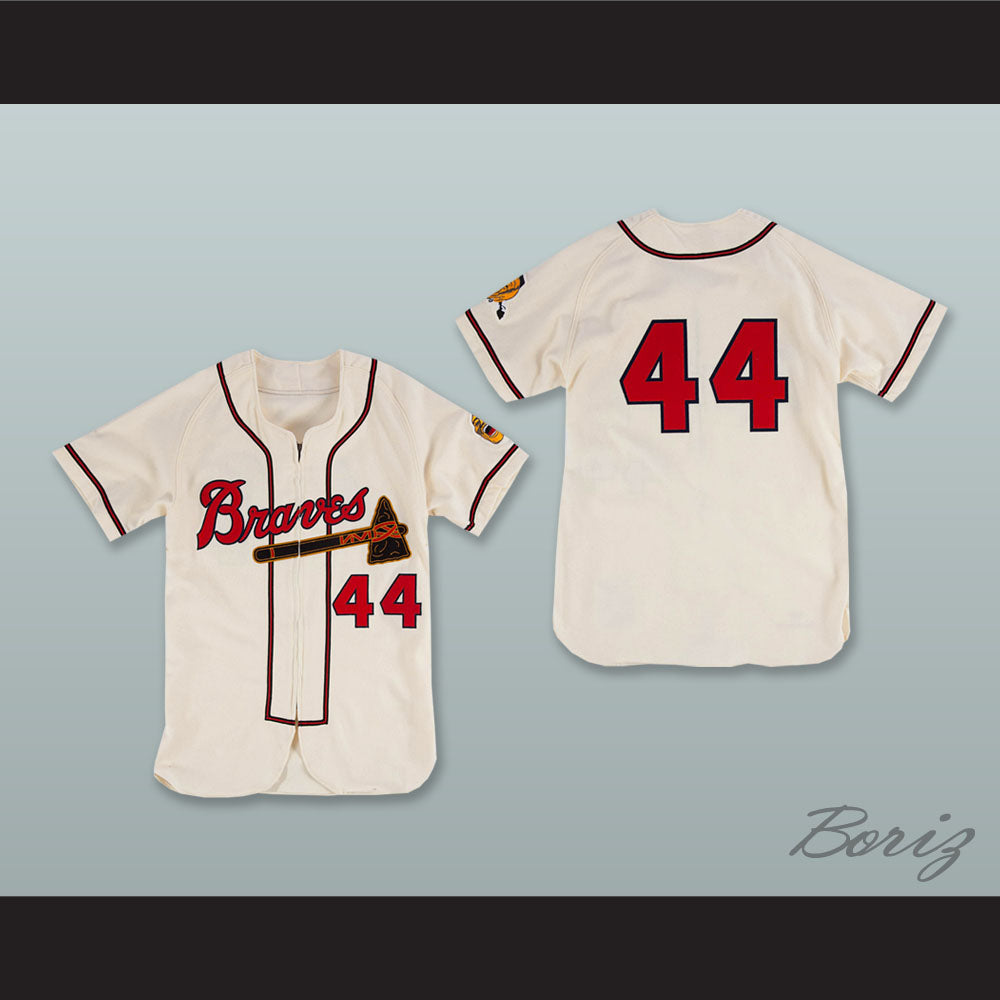 Hank Aaron 44 Milwaukee Braves Zip Up White Baseball Jersey