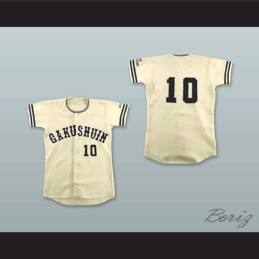 M. Yajima 10 Gakushuin Light Cream Button Down Baseball Jersey