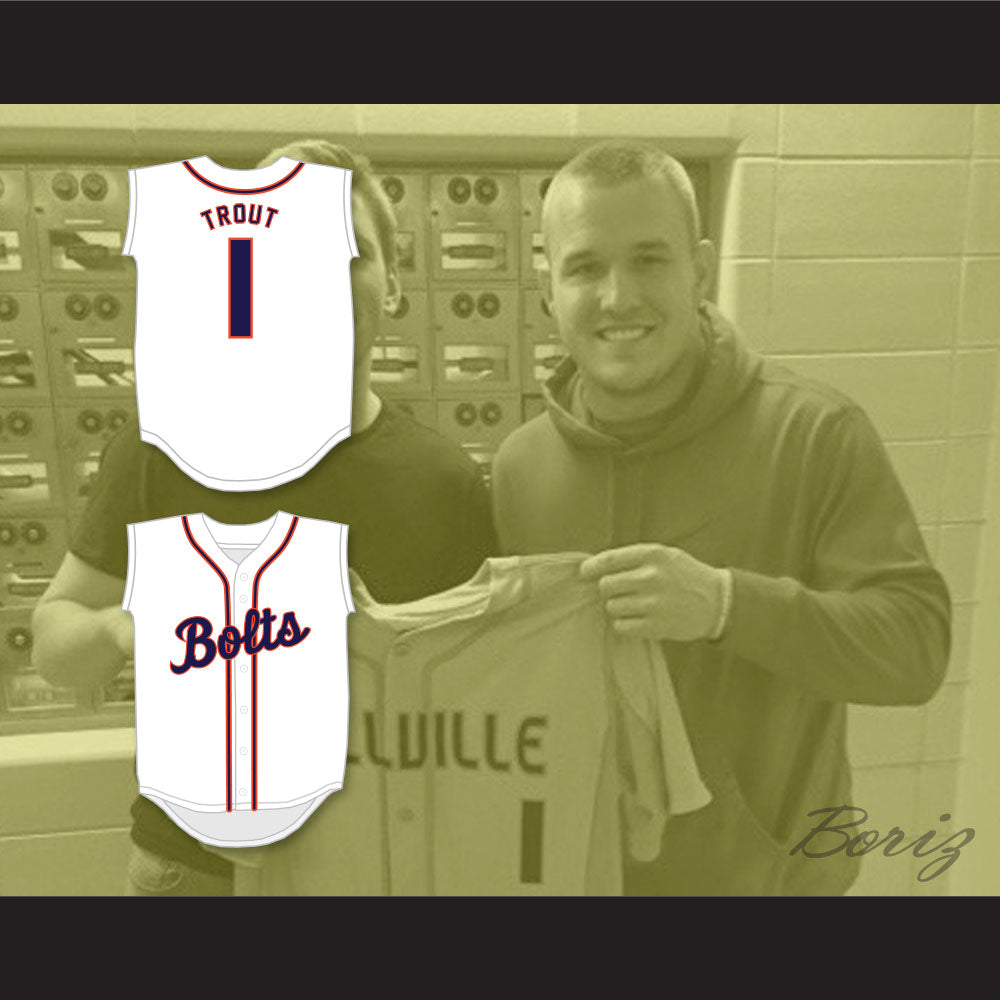 Mike Trout 1 Millville Senior High School Thunderbolts White Baseball Jersey 2