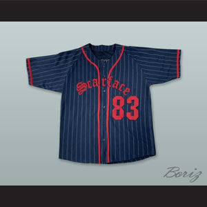 Tony Montana 83 Scarface Navy Blue Pinstriped Baseball Jersey