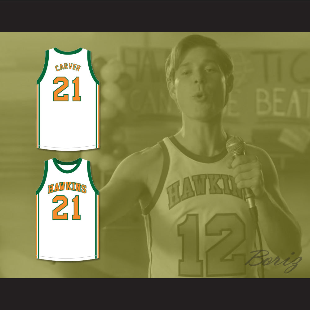Jason Carver 21 Hawkins High School Tigers White Basketball Jersey 2