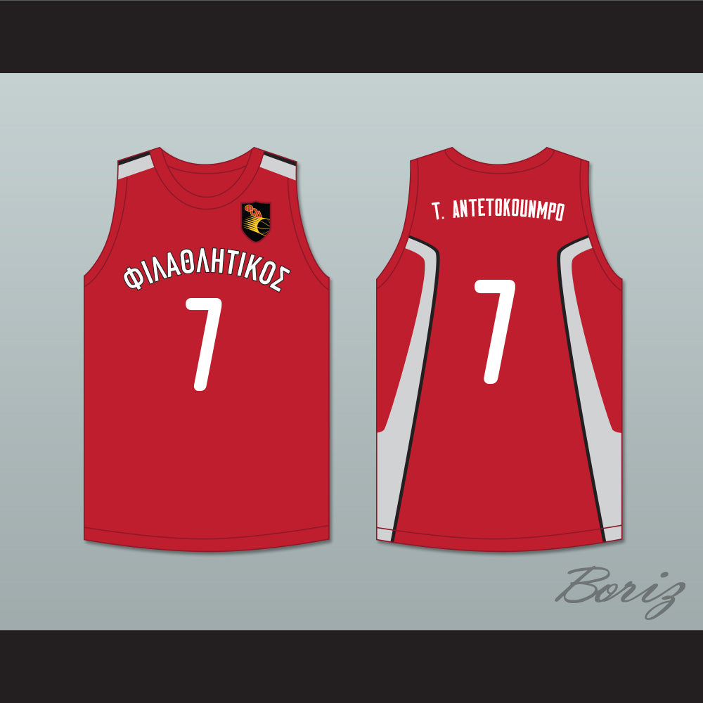 Thanasis Antetokounmpo 7 Filathlitikos A.O Zografou B.C. Red Basketball Jersey 2