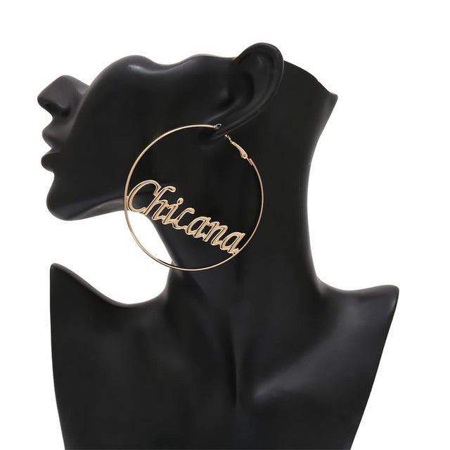 IngeSight.Z Punk Hyperbole Big Circle with Baby Femme Letter Hoop Earrings Women Fashion Jewelry Oorbellen Female