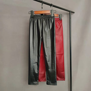 Kids Pants Spring Autumn Girls PU Leather Pencil Pants Children Skinny Black Imitation Leather Leggings Girls Trousers