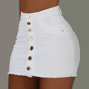 Women Button Denim Jeans Bodycon Mini Skirts Strench High Waist Sexy Club Skirt Summer