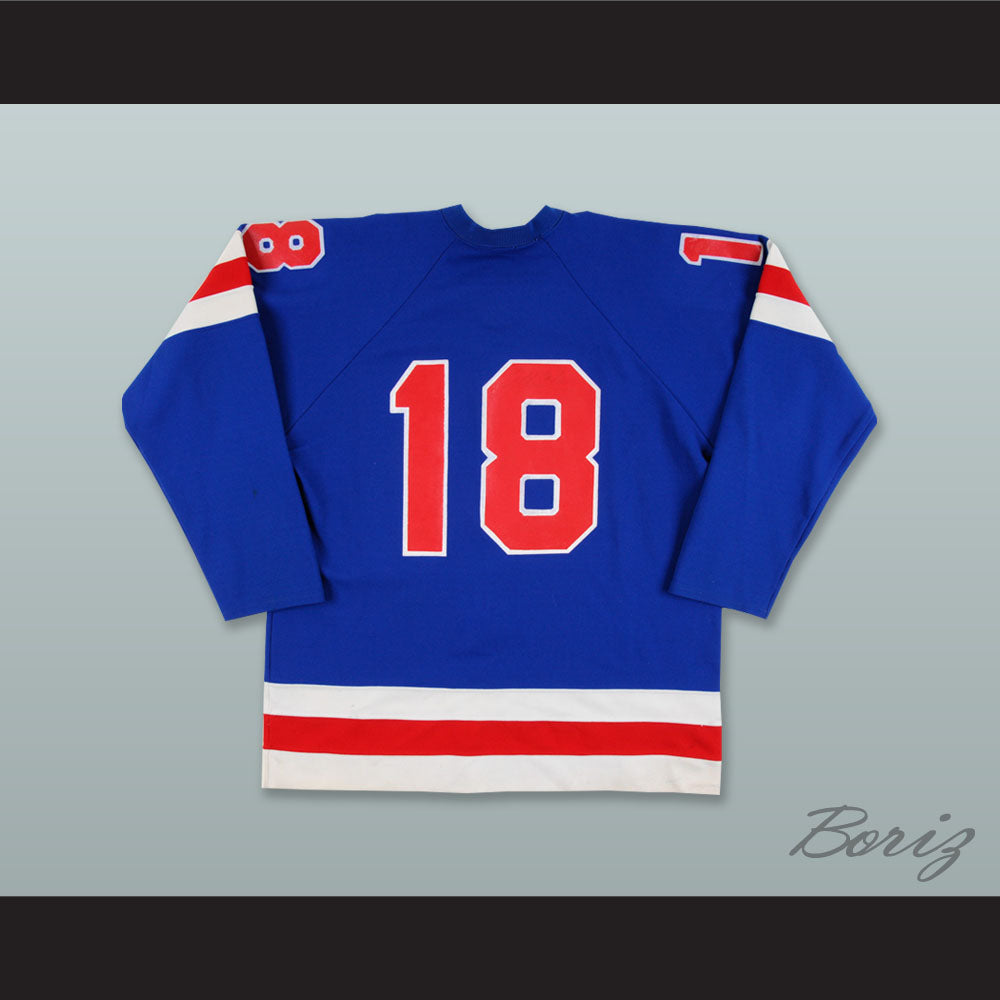 Jeff Carlson 18 Muskegon Mohawks Blue Hockey Jersey