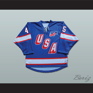 Donald Trump 45 Team USA Blue Hockey Jersey