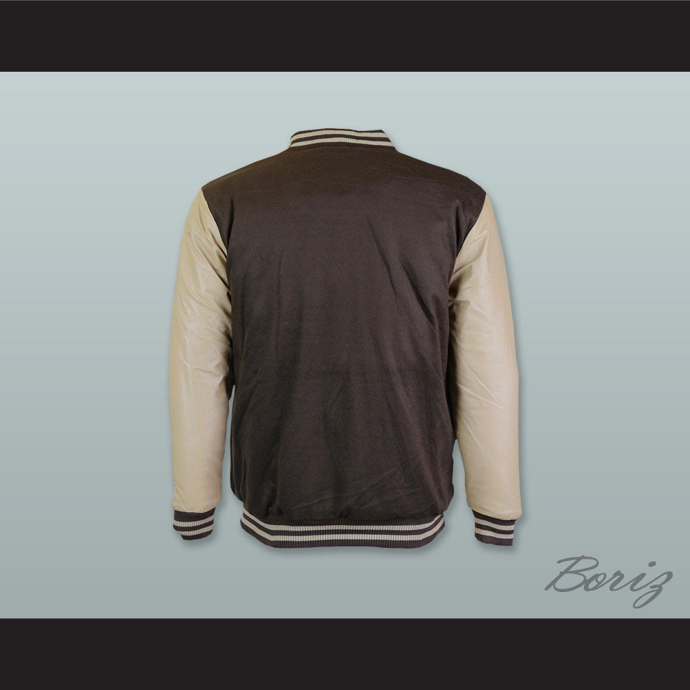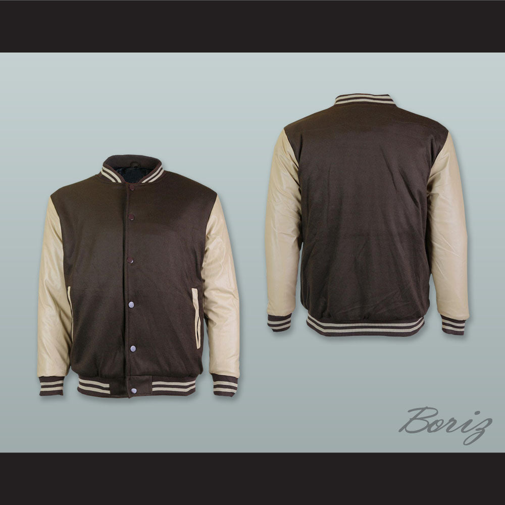 Brown Wool and Tan Lab Leather Varsity Letterman Jacket