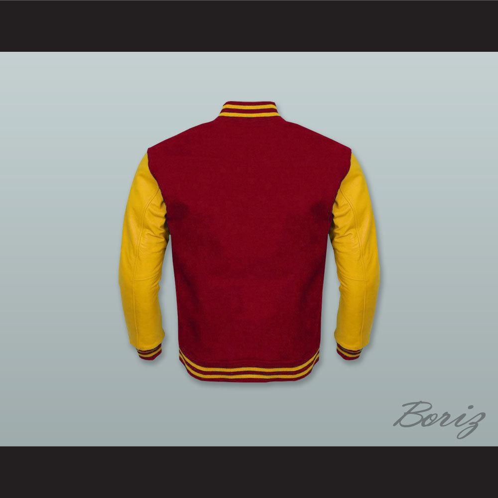 Dark Red Wool and Yellow Gold Lab Leather Varsity Letterman Jacket