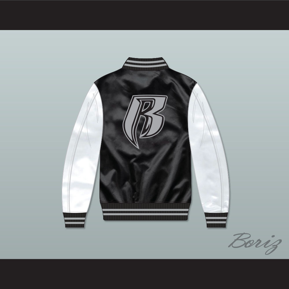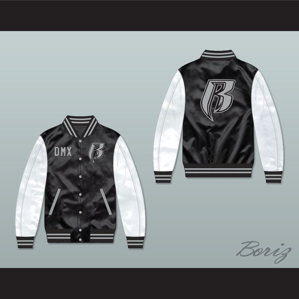 DMX Ruff Ryders Black and White Varsity Letterman Satin Bomber Jacket