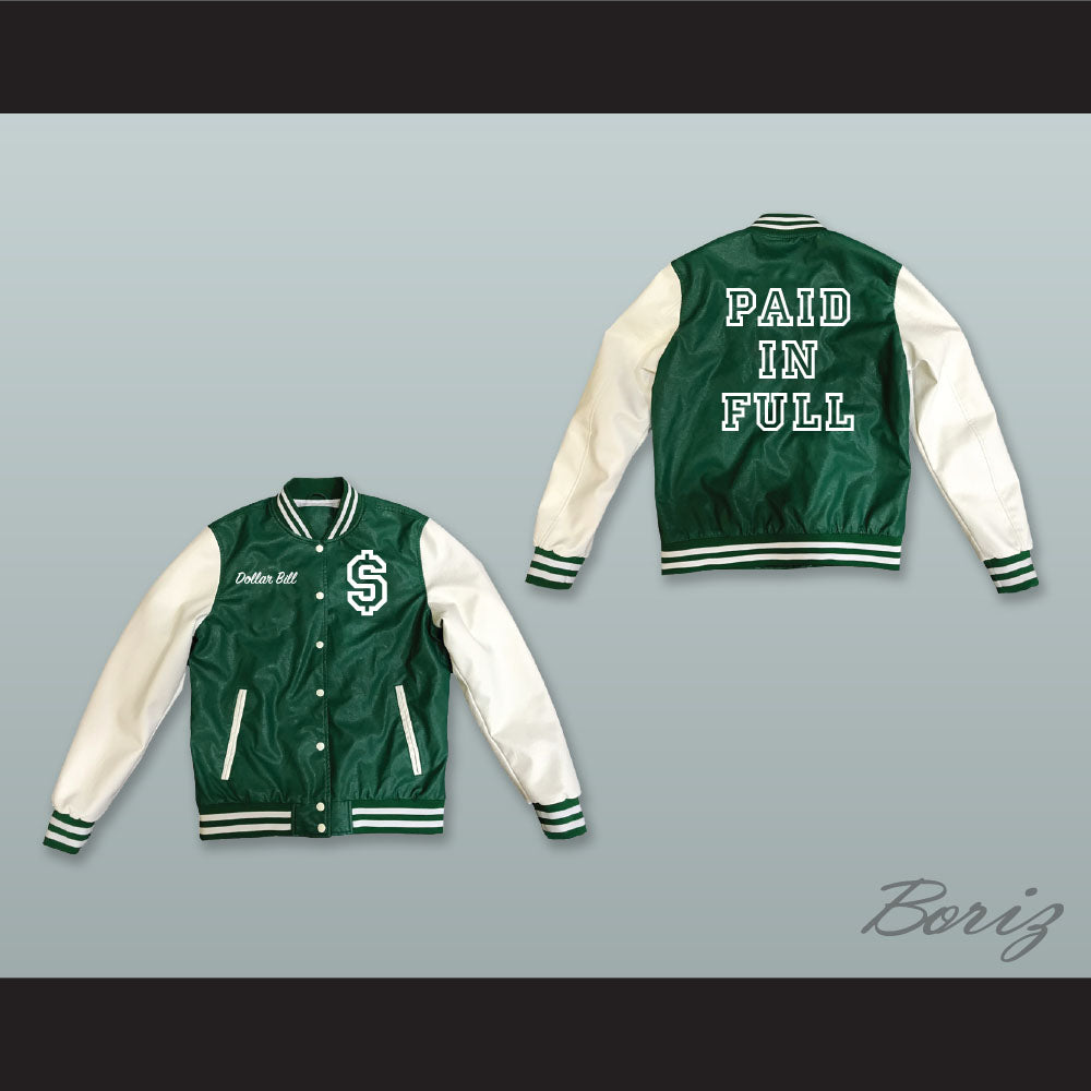 Dollar Bill Paid In Full Green and White Lab Leather Varsity Letterman Jacket