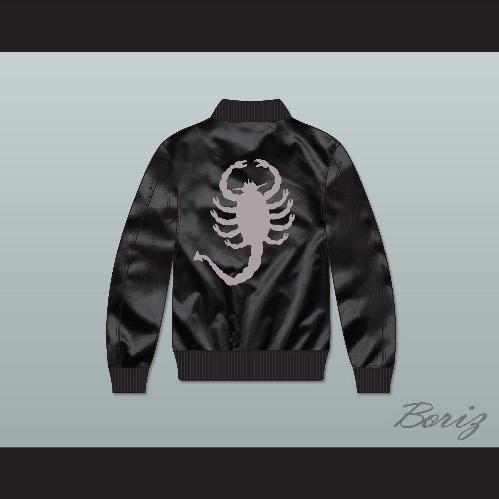 Driver Scorpion Black Varsity Letterman Satin Bomber Jacket