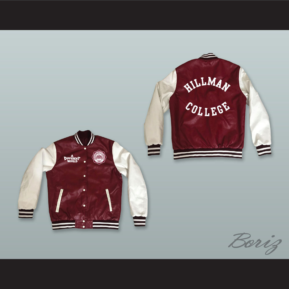 Hillman College Eagle Crest Maroon and White Lab Leather Varsity Letterman Jacket
