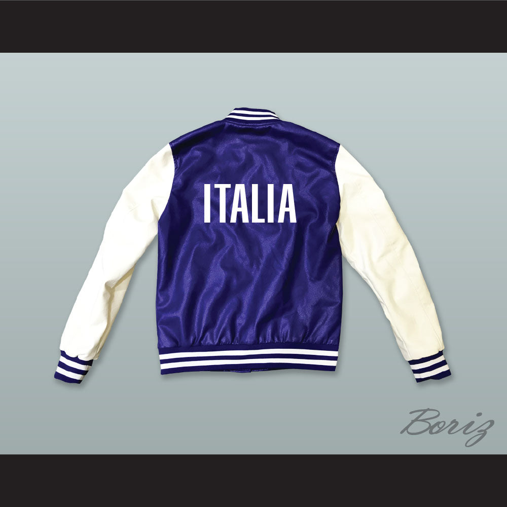 Italia Blue and White Lab Leather Varsity Letterman Jacket