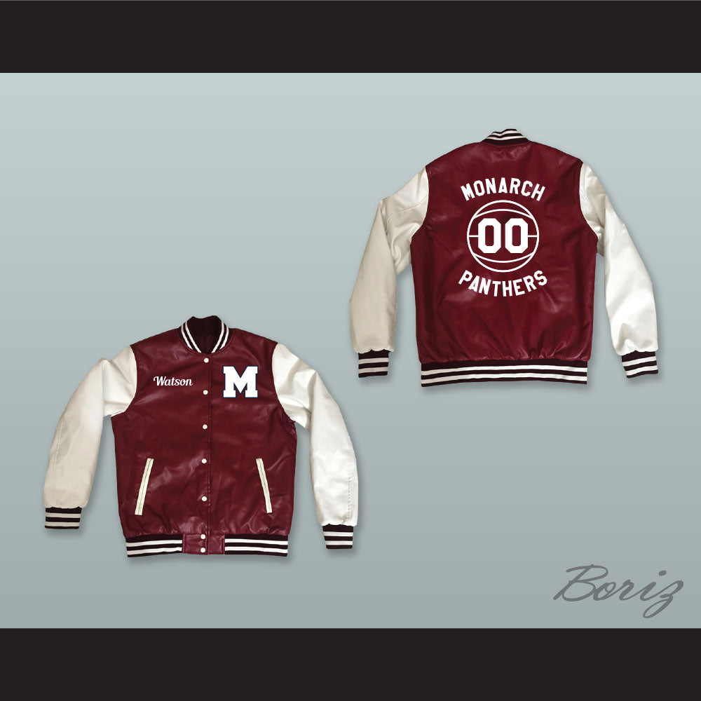 Kyle Lee Watson 00 Monarch High School Panthers Basketball Maroon and White Lab Leather Varsity Letterman Jacket