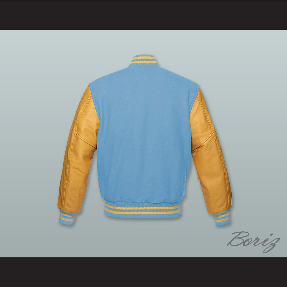 Light Blue Wool and Old Gold Lab Leather Varsity Letterman Jacket