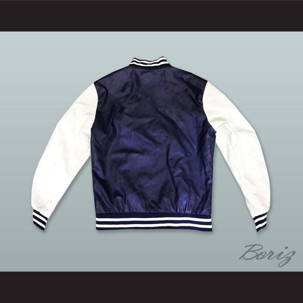 Navy Blue and White Lab Leather Varsity Letterman Jacket