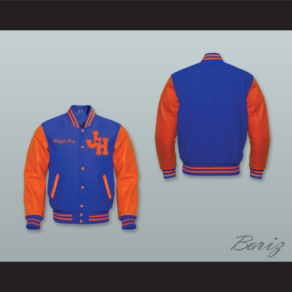 Reggie Ray John Hughes High School Royal Blue Wool and Orange Lab Leather Varsity Letterman Jacket