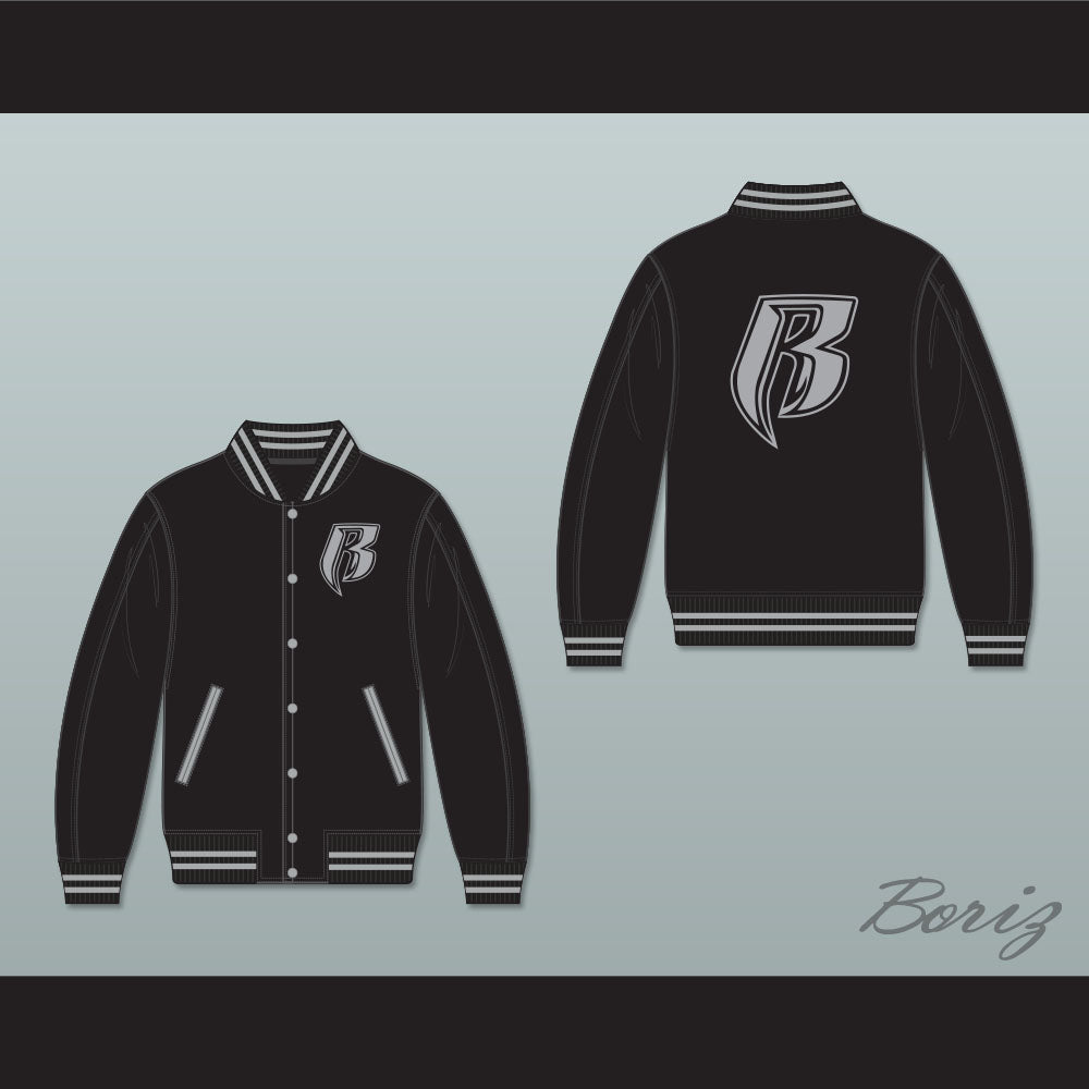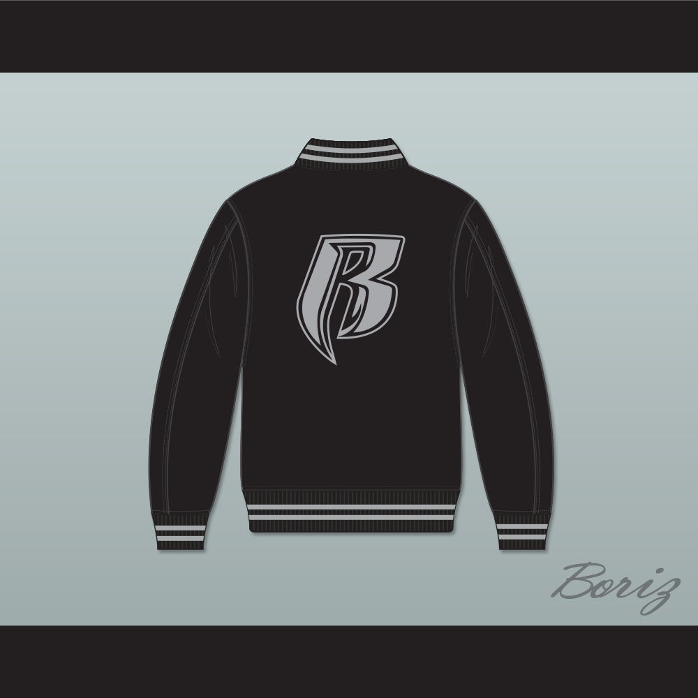 Ruff Ryders Black Varsity Letterman Jacket-Style Sweatshirt
