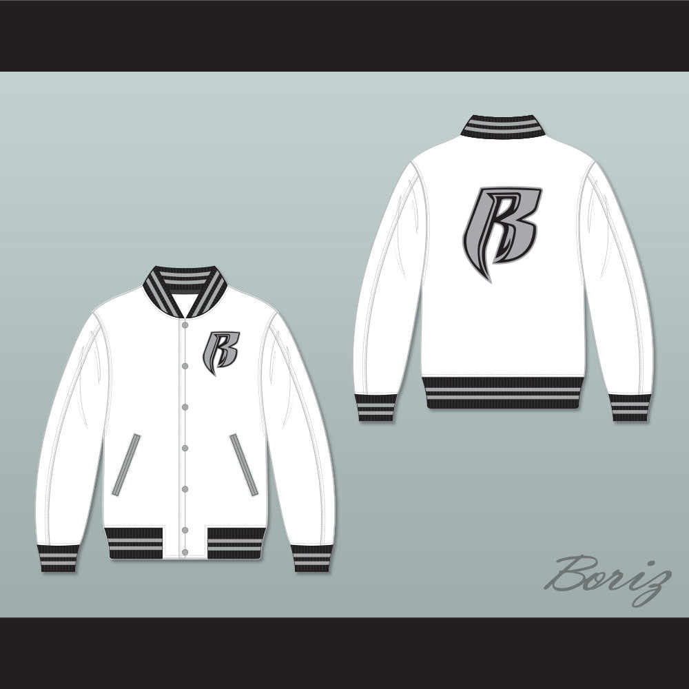 Ruff Ryders White Varsity Letterman Jacket-Style Sweatshirt