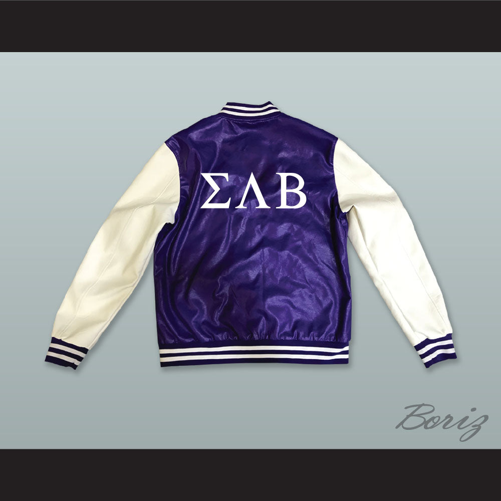 Sigma Lambda Beta Fraternity Purple and White Lab Leather Varsity Letterman Jacket