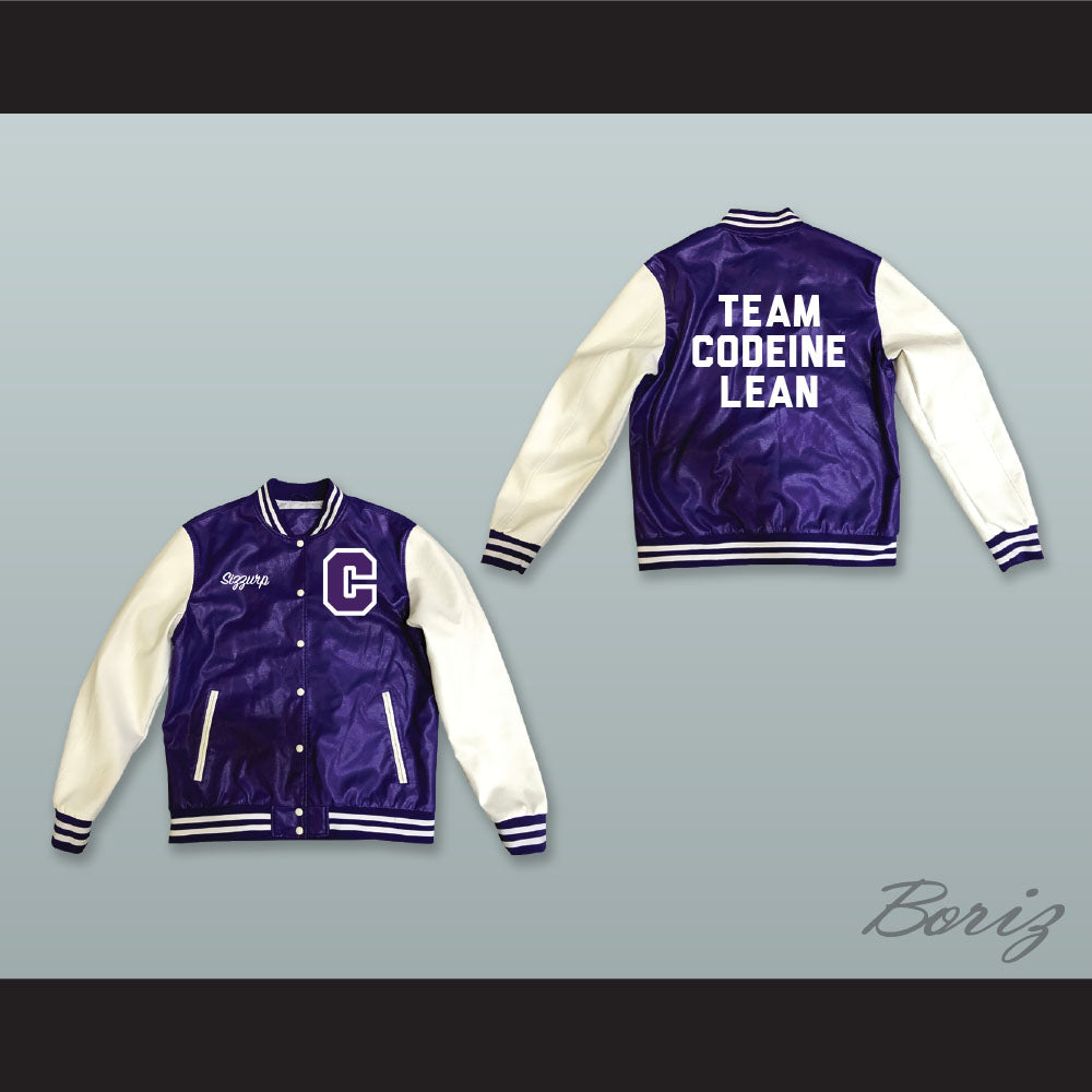 Sizzurp Team Codeine Lean Purple and White Lab Leather Varsity Letterman Jacket