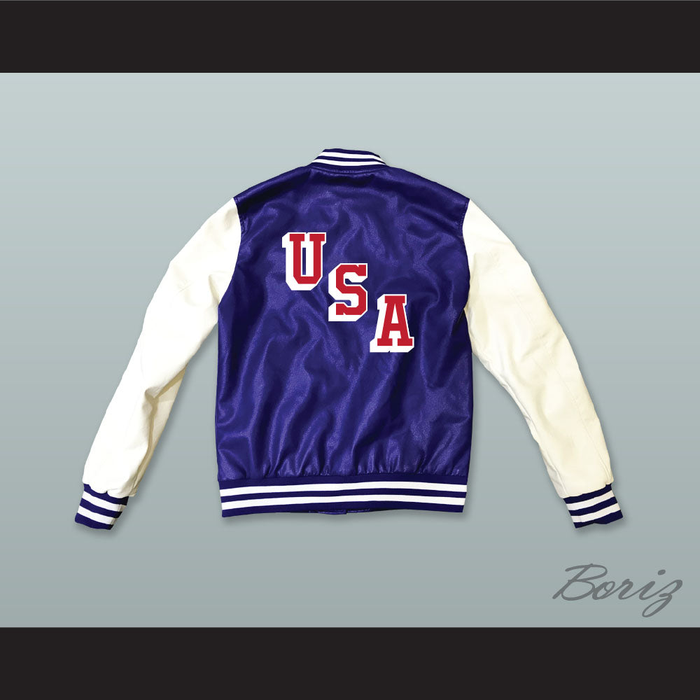 USA Blue and White Lab Leather Varsity Letterman Jacket 3