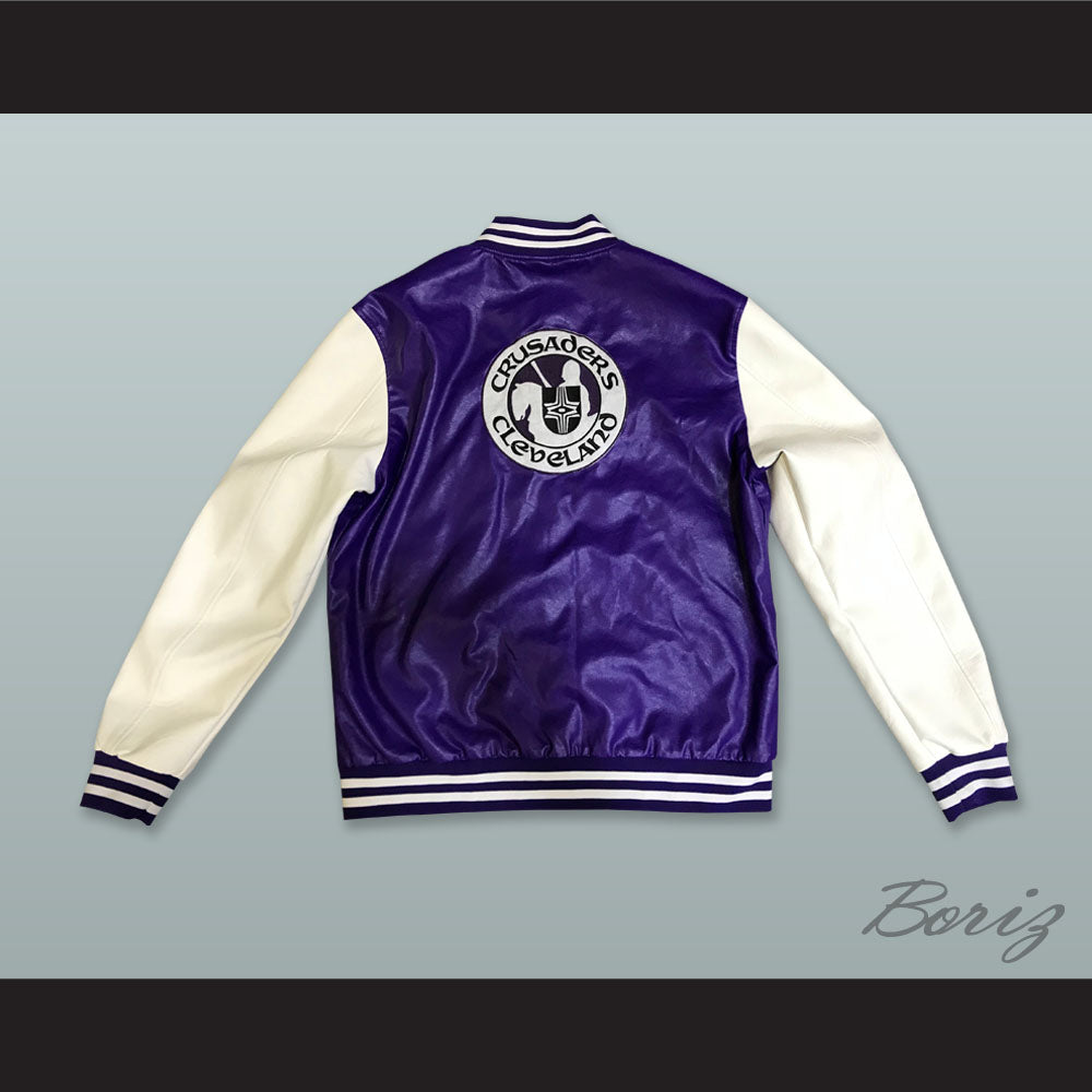 WHA Cleveland Crusaders Hockey Purple and White Lab Leather Varsity Letterman Jacket