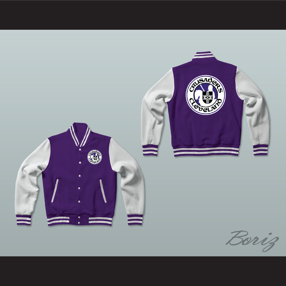 WHA Cleveland Crusaders Purple and White Varsity Letterman Jacket-Style Sweatshirt 2