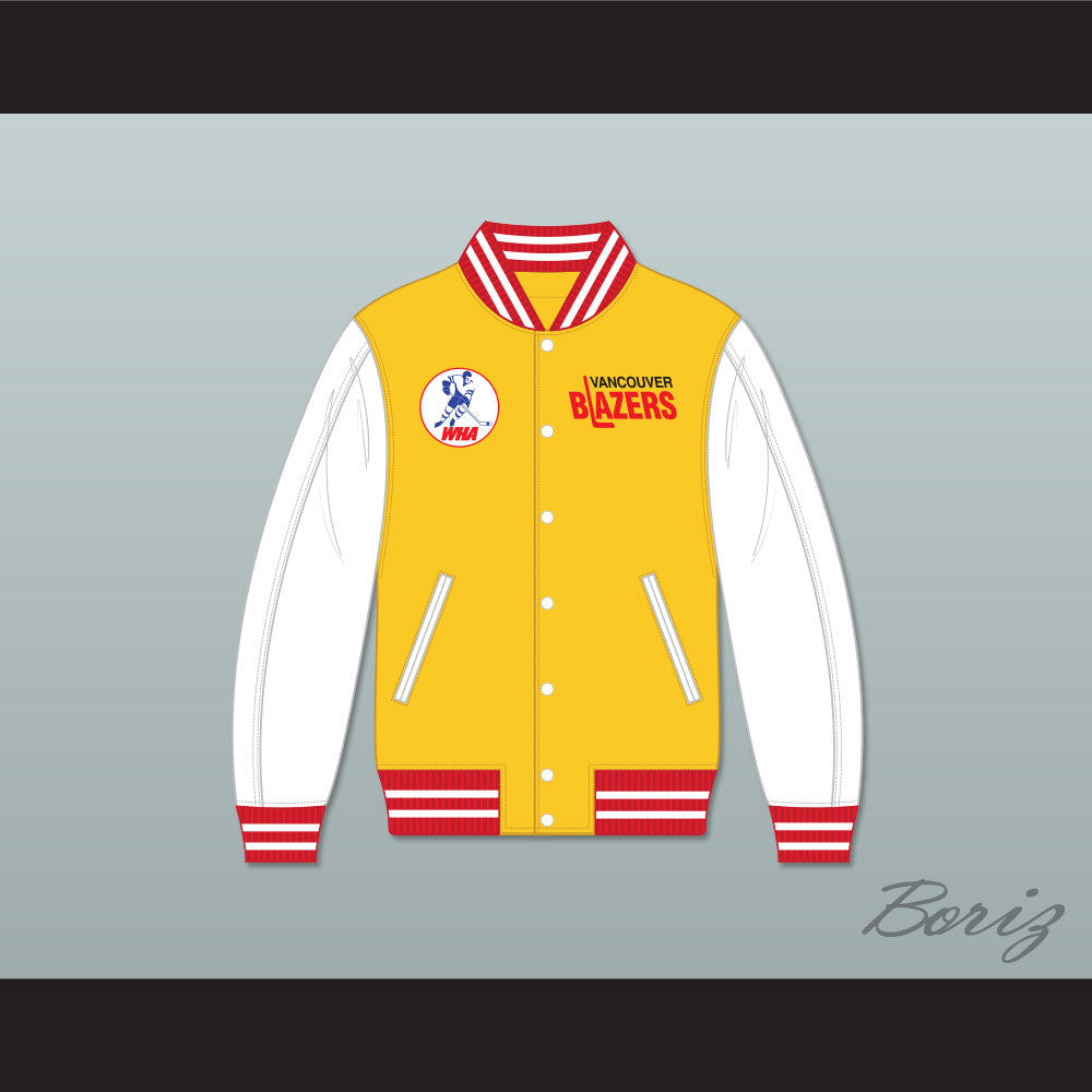 WHA Vancouver Blazers Yellow and White Varsity Letterman Jacket-Style Sweatshirt 1