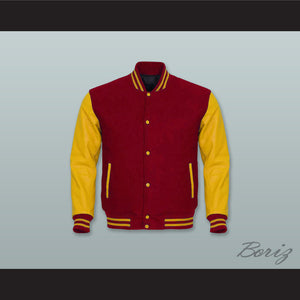 Dark Red Wool and Yellow Gold Lab Leather Varsity Letterman Jacket