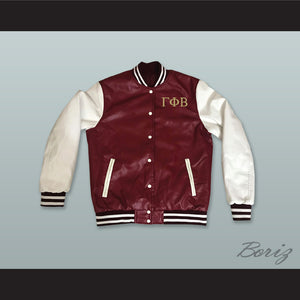 Gamma Phi Beta Sorority Maroon and White Lab Leather Varsity Letterman Jacket