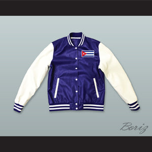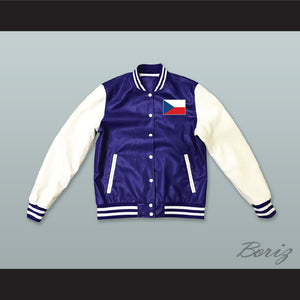 Czech Republic Blue and White Lab Leather Varsity Letterman Jacket