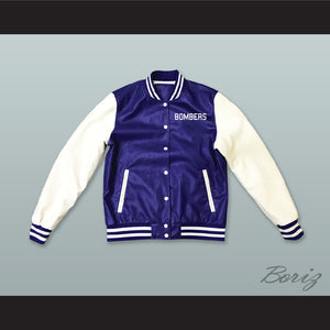 Bombers Tournament Shoot Out Blue and White Lab Leather Varsity Letterman Jacket