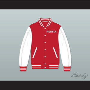 Russia Red and White Varsity Letterman Jacket-Style Sweatshirt