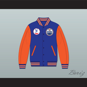 WHA Alberta Blue and Orange Varsity Letterman Jacket-Style Sweatshirt 2