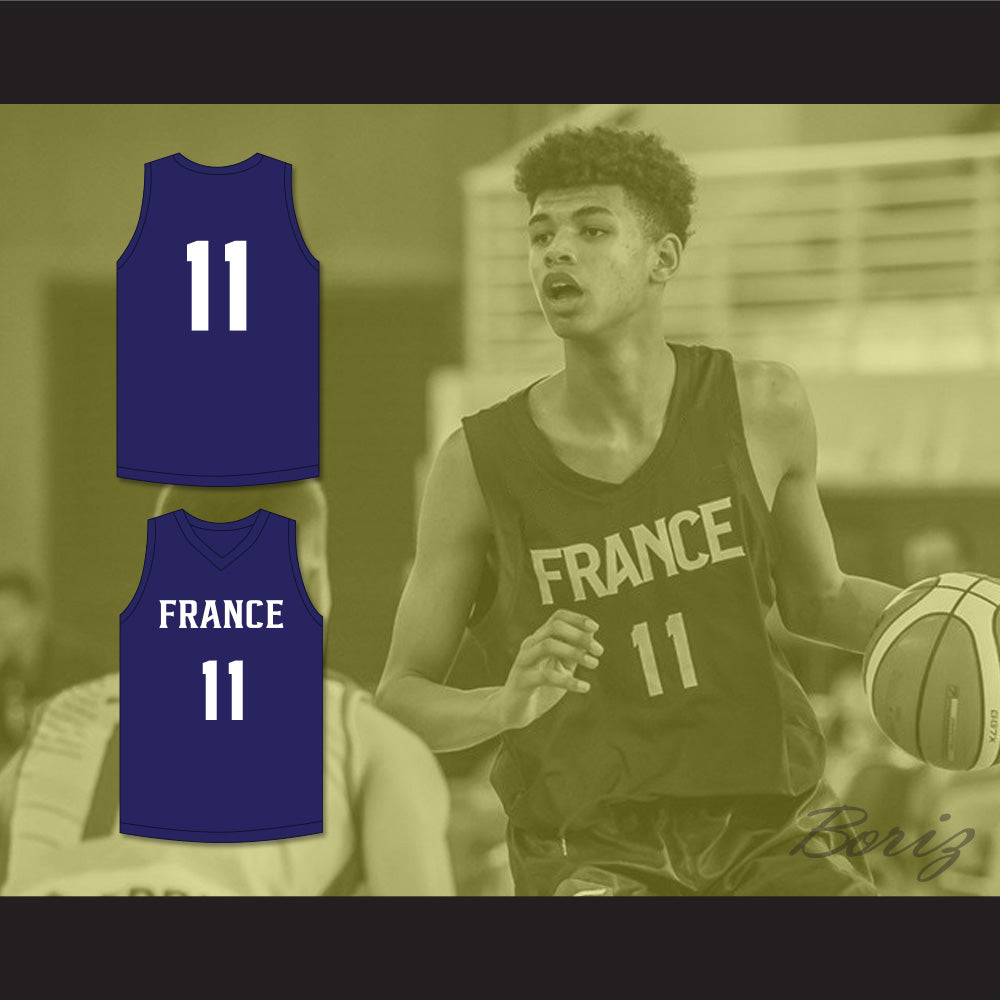Ousmane Dieng 11 France Navy Blue Basketball Jersey 1